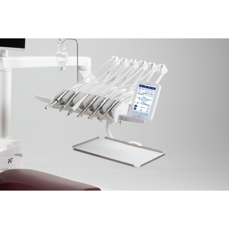 Wszystko na wyciągnięcie ręki! W nowym modelu NT konsola dentysty również zmieniła kształt i materiał, stając się bardziej wydajną i łatwiejszą do dezynfekcji. Pionowy skok ramienia może sięgać do 600 mm.
